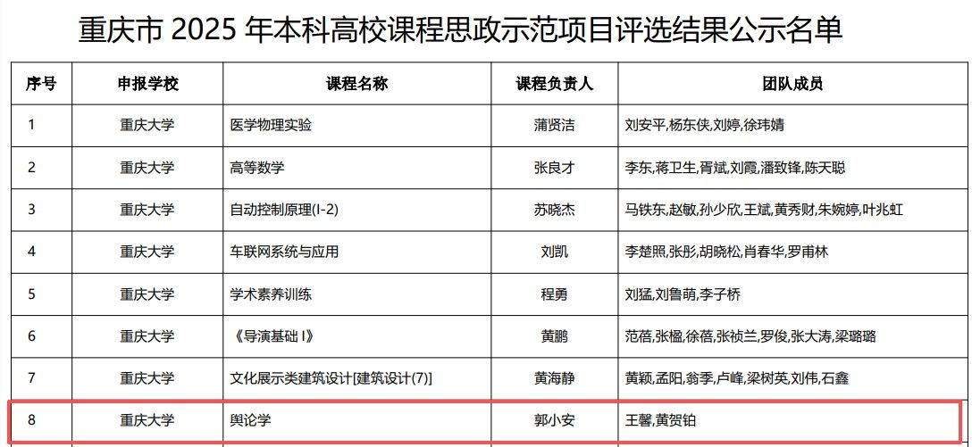 近日,重庆市2025年本科高校课程思政示范项目评选结果正式公布。色花堂